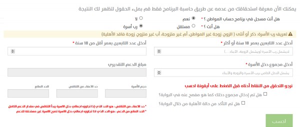 حساب المواطن أمثلة توضيحية لقيمة الاستحقاق تبعا لعدد أفراد الأسرة ودخلها وأعمار التابعين