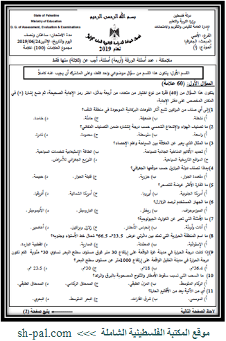 امتحان جغرافيا للصف الثاني عشر أدبي انجاز لعام 2019 المكتبة الفلسطينية الشاملة