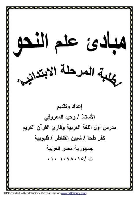 مبادئ علم النحو للمرحلة الإبتدائية فى 18 ورقة الموقع التعليمي Ademweb Com