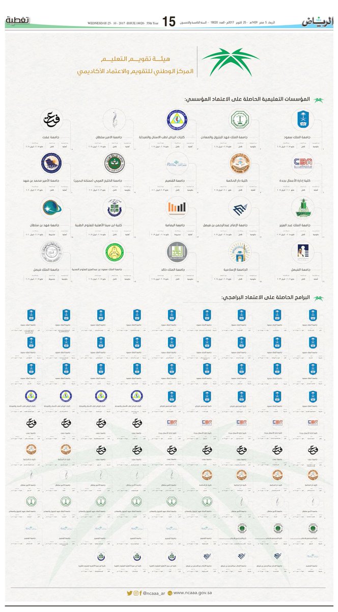 مركز اعتماد On Twitter المركز الوطني للتقويم والاعتماد الأكاديمي بهيئة تقويم التعليم يصدر القائمة الجديدة للمؤسسات التعليمية والبرامج الحاصلة على الاعتماد Https T Co Jzg8rtkmkq