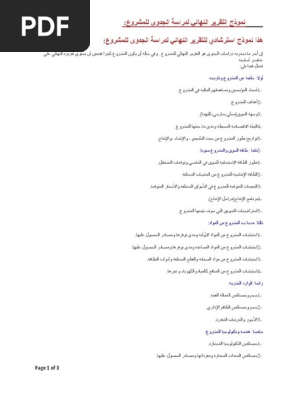 نموذج استرشادي للتقرير النهائي لدراسة الجدوى للمشروع