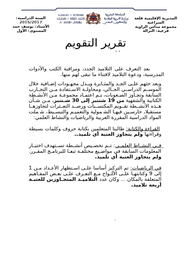 نموذج تقرير حول الاحتفال بالأسبوع الوطني للتعاون المدرسي موقع الأساتذة والتلاميذ للتعليم عن بعد