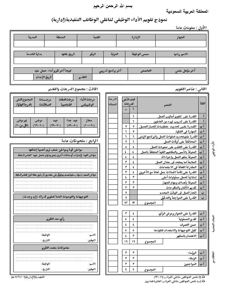 نموذج تقويم الأداء الوظيفي للوظائف الإدارية