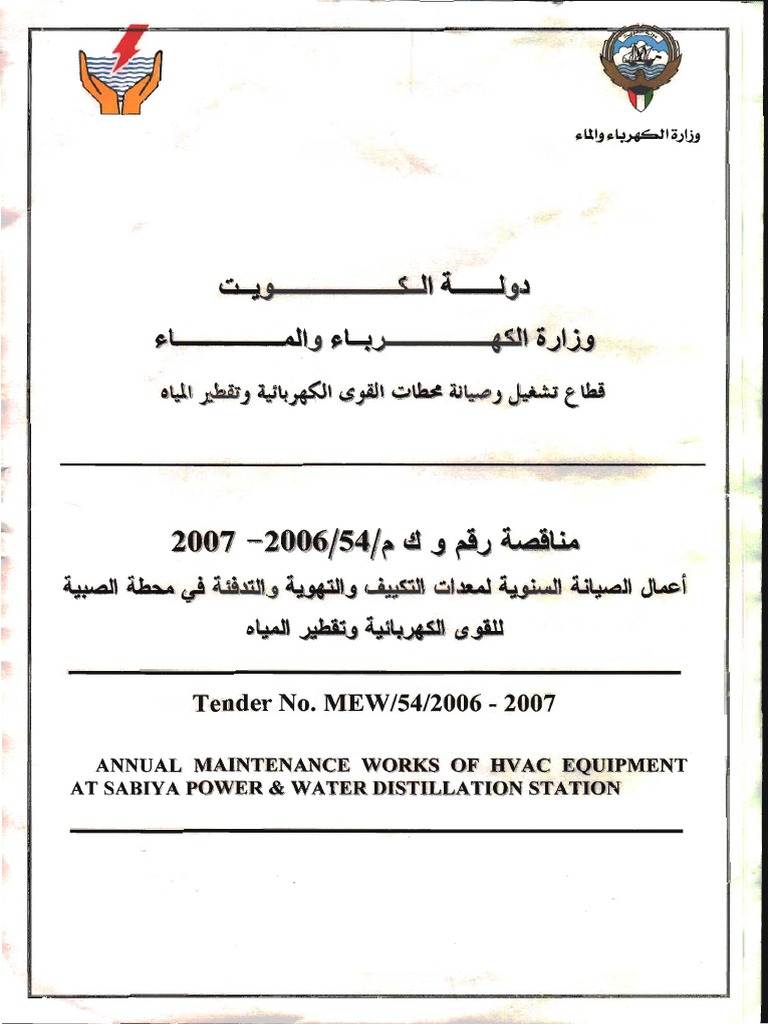 وثائق مناقصة التشغيل والصيانة الكاملة والإصلاح وقطع الغيار