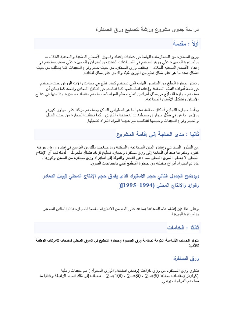 دراسة جدوى مشروع ورشة لتصنيع ورق الصنفرة