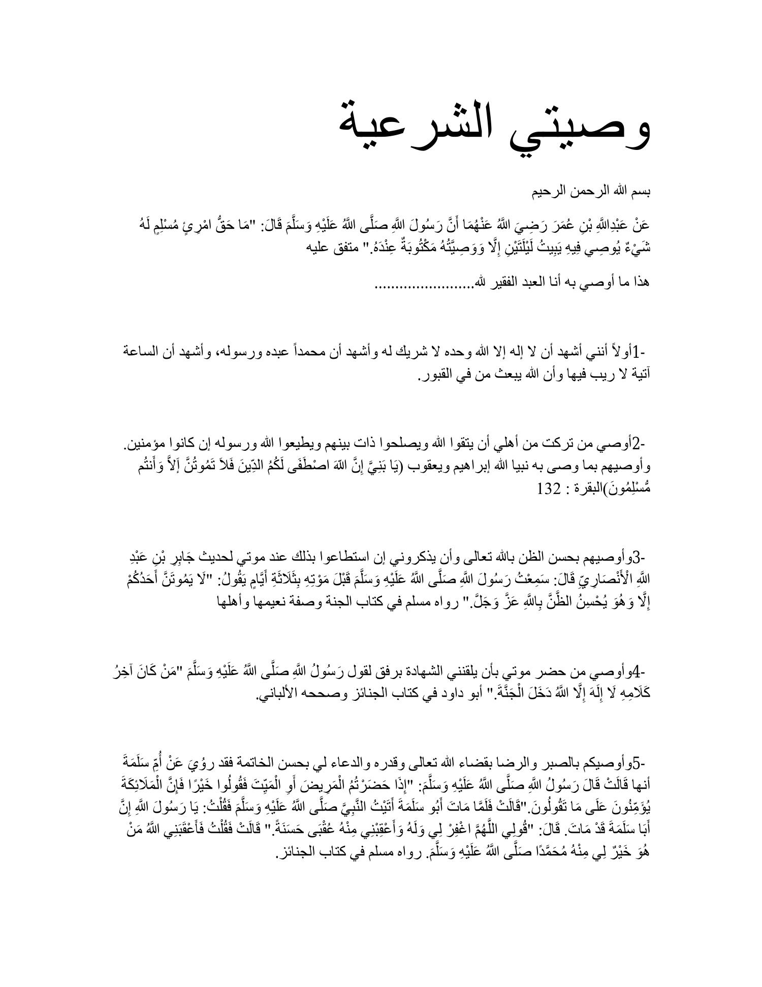 وصية شرعية Doc Allah Islamic Belief And Doctrine