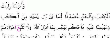 و أ ن اح ك م ب ي ن ه م ب م ا أ ن ز ل الل ه و ل ا ت ت ب ع أ ه و اء ه م و اح ذ ر ه م أ ن ي ف ت ن وك ع ن ب ع ض م ا أ ن ز ل الل ه إ ل ي ك ف إ ن ت و ل و ا ف اع ل م أ ن م ا ي ر يد الل ه أ ن ي ص يب ه م ب ب ع ض ذ ن وب ه م و إ ن