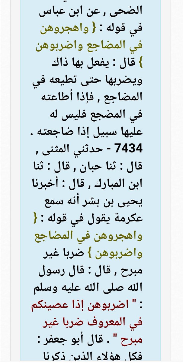 Taleb Al Abdulmohsen A Twitter حدثنا ابن حميد قال حدثنا جرير عن الحسن بن عبيد الله عن أبي الضحى عن ابن عباس في قوله واهجروهن في المضاجع واضربوهن قال يفعل بها ذاك