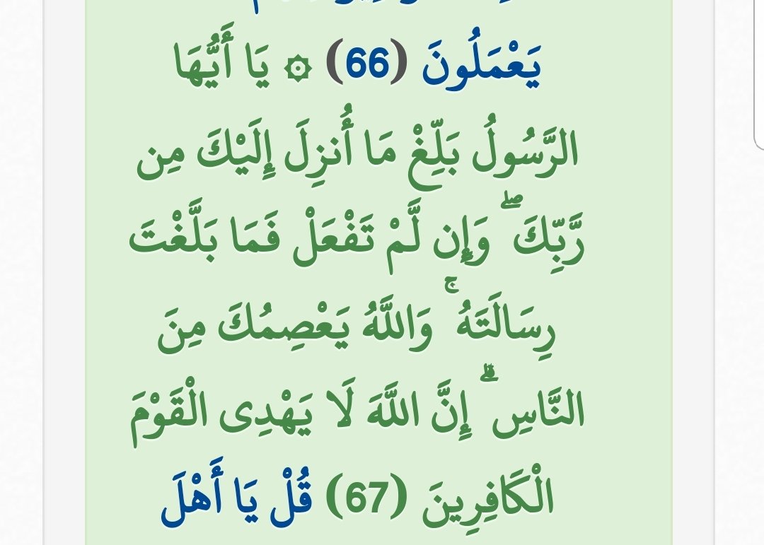 Mhk Altaiy On Twitter ياايها الرسول بلغ ماانزل اليك من ربك وان لم تفعل فما بلغت رسالته والله يعصمك من الناس ان الله لايهدي القوم الكافرين Https T Co Tvztpzsye7