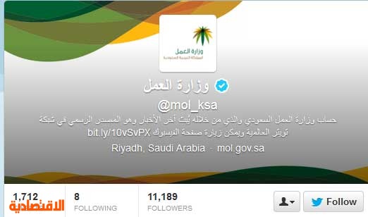 وزارة العمل توثق حسابها رسميا على تويتر صحيفة الاقتصادية
