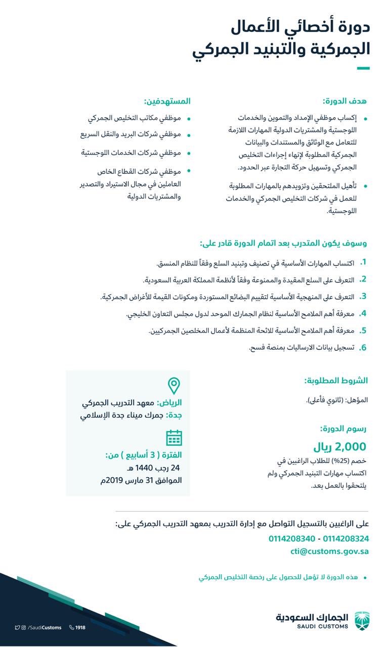ملتقى التأهيل و التوظيف السعودي تعلن الجمارك السعودية بدء التقديم بمختلف المنافذ لحملة الثانوية فأعلى