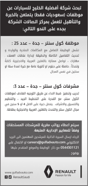 شركة افضلية الخليج وظائف نسائيه كول سنتر ومشرفات عدد 28 وظيفة