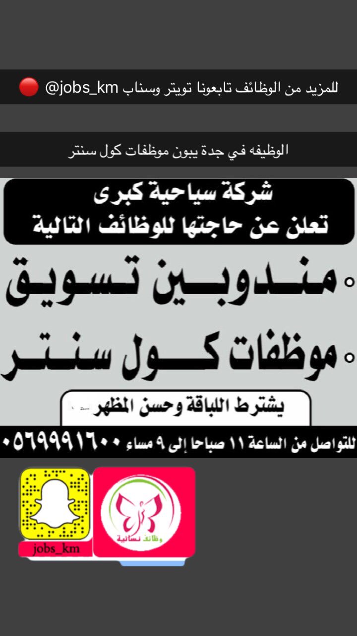 وظائف نسائيةさんのツイート وظائف نسائية في جدة شركة سياحية كبرى ب جده تعلن عن حاجتها لموظفات كول سنتر Jobs Km وظائف جدة للنساء توظيف نساء جده وظائف شاغرة نساء Https T Co Ukdspph365