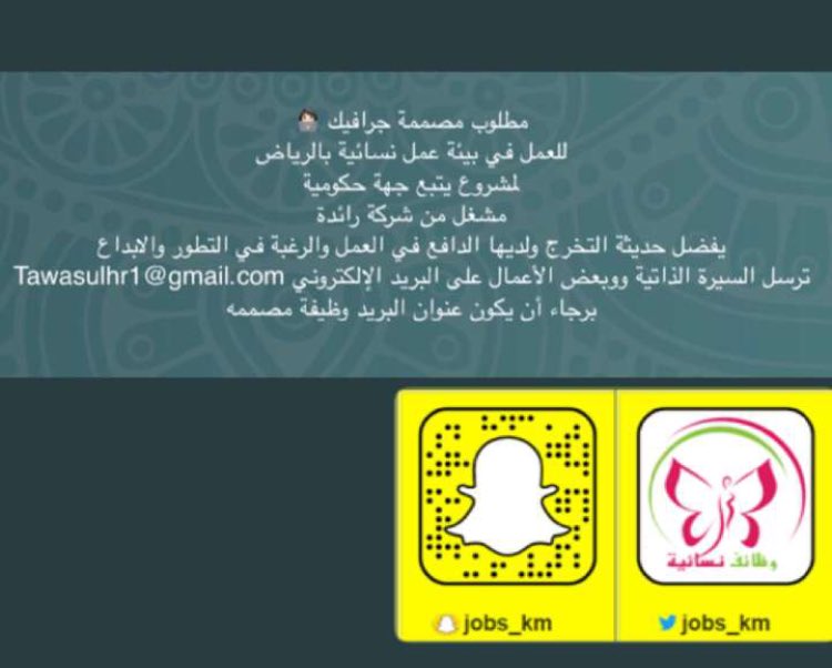 وظائف نسائية A Twitter وظائف نسائية في الرياض مطلوب مصممة جرافيك للعمل في بيئة عمل نسائية بالرياض لمشروع يتبع جهة حكومة مشغل من شركة رائدة يفضل حديثة التخرج ولديها الدافع في العمل والرغبة