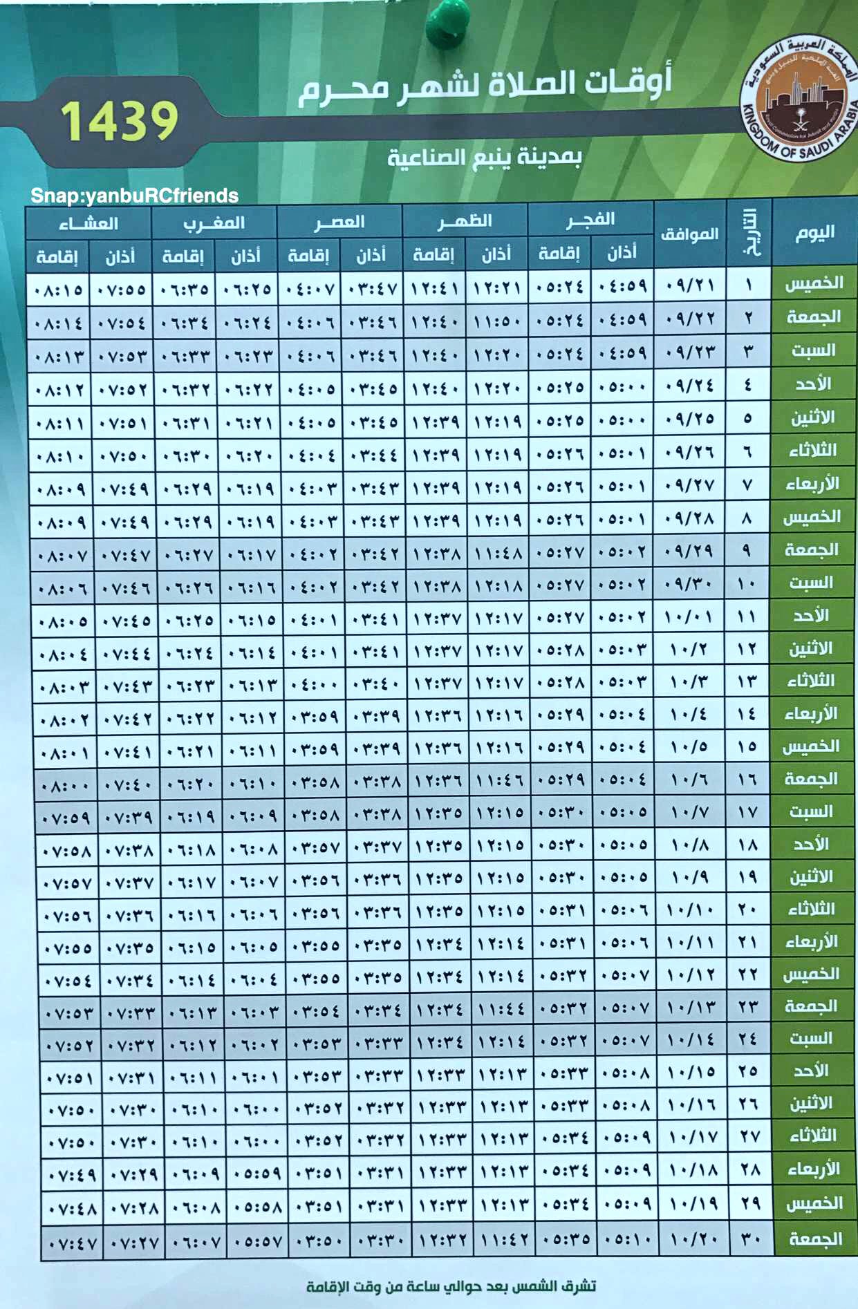 أصدقاء ينبع الصناعية On Twitter أوقات الصلاة لشهر محرم ١٤٣٩ هـ ينبع الصناعيه ينبع البحر ينبع